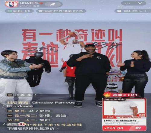 退役球星麥迪亮相“NBA甄選”帶貨